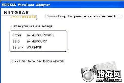 之后我们就指需要点击“Finish”,就可以享受安全的无线网络连接了,下图是连接后的界面。