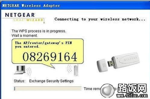 在上一页中介绍到的NETGEAR WN111无线网卡的PIN加密界面键入“08269164”后,点击“Next”进行下一步。会有如下图弹出。