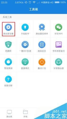 在工具箱页面中,我们点击选择第一个选项“路由器设置”菜单,点击之后即可进入路由器设置页面。