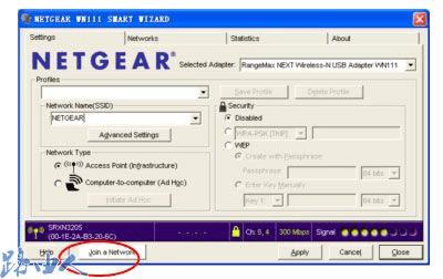 三、在电脑上安装WN111无线网卡的驱动和管理软件,完成后打开WN111管理工具,点击Join a Network。
