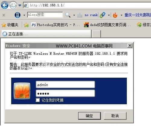 第一步:首先登录路由器管理,方法在浏览器窗口中,输入192.168.1.1,让后按回车键打开,之后会弹出路由器登录对话框,我们输入路由器账号与密码,登录即可,如下图所示: