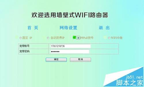 4、如果宽带连接选择“PPPoE拨号”,输入帐号和密码,然后点击“确定”
