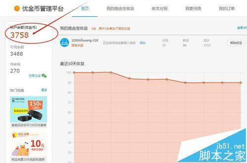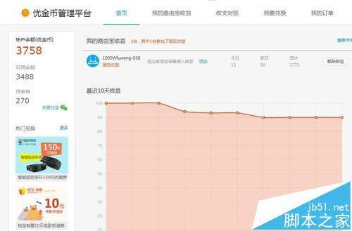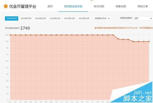 2、点击“我的路由宝收益”,可以看到本月每天赚取优金币的情况,如下图