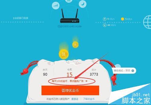 优酷路由宝除了具备正常路由器上网连接的功能外,最大的特点是可以优化用户家里的闲置上行带宽,为观看优酷土豆视频的其他用户服务。每个用户根据贡献的上行带宽的多少,获得一种“优金币”的虚拟币积累,再用优金币在兑换商城兑换现金和礼品。而对于网络带宽不是很大的家庭,采用固定收益模式是个不错的选择,那么路由宝如何设定为固定收益模式呢?