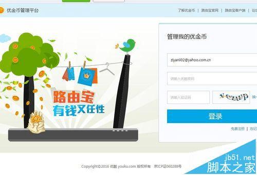 5、至此,我们已设置成功优酷路由宝赚取优金币的模式为“固定收益模式”了。如果想了解每天优金币的赚取情况,那么点击上图中的“进入优金币管理平台”大蓝色按钮。点击之后,弹出“优金币管理平台”登录窗口,如下图