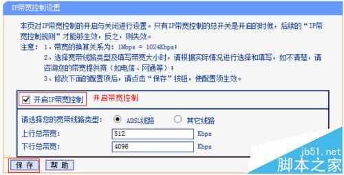 2、确认已勾选“开启IP带宽控制”,且填写的带宽大小是当前线路的实际带宽,如图所示