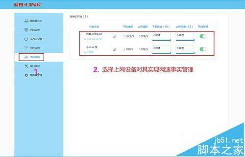 4)进行终端上网控制设置(可管理上网设备上网时速)