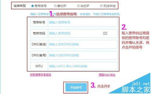 1)宽带拨号设置:如图点击高级设置对路由器进行设置(图中DNS和MTU不需要设置),宽带拨号即PPPOE拨号配置。