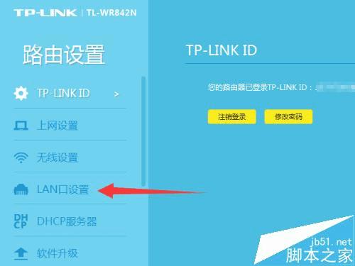 3、进入路由器设置后,点击左边设置选项的[LAN口设置]