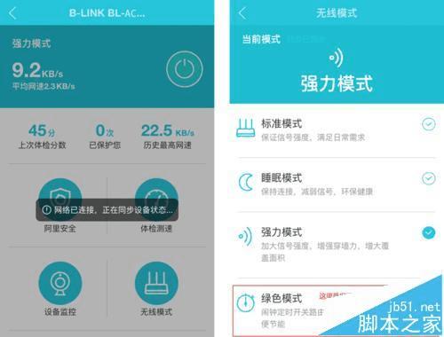 4、点设备进去之后是个很简单的界面,点击无线模式,可以自由切换,选强力模式就可以了,绿色模式,是用来设置定时开/关wifi功能。