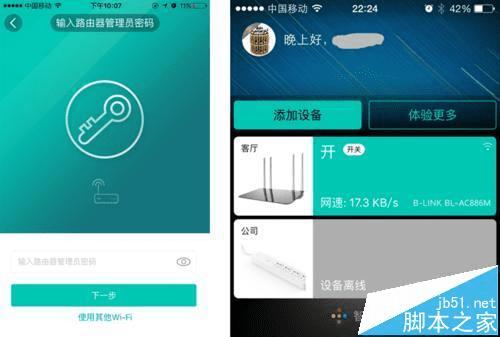 3、只需要输入路由器管理员密码admin,点击下一步就可以绑定路由器了。在app首页就可以看到绑定的路由器了。