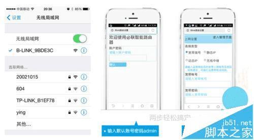 1、为路由器插上电源,接上网线,之后便可以从手机端搜索到 “B-LINK” 开头的网络信号,点进去后手机会自动弹出设置网页,只要跟随网页输入运营商的用户名密码(有些运营商的网络不需要)、为 WiFi 信号设置用户名密码,之后就可以使用了。