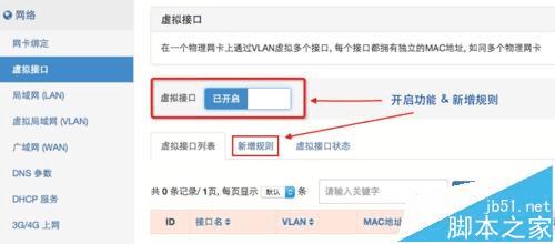 1、进入“网络”-》“虚拟接口”,启用“虚拟接口”功能