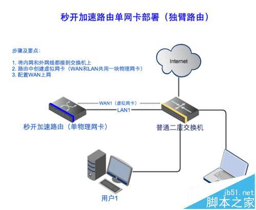 独臂路由部署模式。独臂路由(又称单臂路由),用于路由器只有一块物理网卡的场合