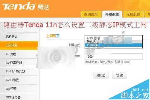 腾达无线路由器tenda 11n怎么设置二级静态IP模式上网?无线路由器怎么设置才能用静态IP模式连接上网?静态IP模式上网该如何设置怎么连接?