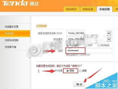 7、再进入无线设置的 无线加密中,对无线密码进入设置后,点击确定保存,再把可上网的网络线连接腾达无线路由器tenda 11n的WAN口,即可开始享受无线上网的便利了.10:28 2016/3/9