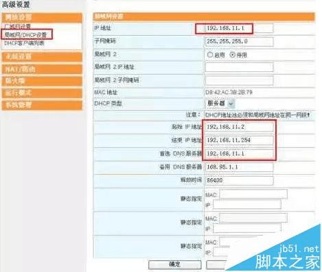 FR系列(白色路由器)点击“网络设置”,“局域网/DHCP 设置”,将192.168.1.1 改为192.168.11.1,首选DNS 服务器也改为192.168.11.1,点击确定,等待30 秒(下图)