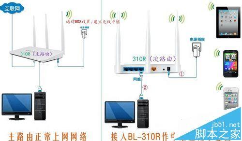 概述:“无线放大”,并不是像扩音机一样,将微弱的信号放大几十倍或几百倍。这里的“无线放大”,指的是扩大无线的覆盖范围(在原无线路由器的无线覆盖范围,比如20米;利用BL-310R的这个功能,增加无线信号覆盖范围<BL-310R自身有一个无线覆盖范围,比如20米>;间接的将无线信号延伸至40米);特别提示:无线“放大”延伸距离多少,决定于所处环境;室内、室外的效果,不能拿来比较;即使是室内,因室内布局及环境不同,效果也均不同。(使用WDS,主、次路由必须都支持WDS功能,适用于同品牌之间路由器作无线中继)