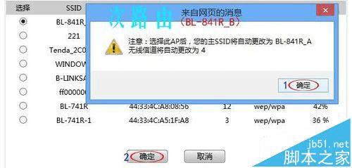 (便于区分开主、次路由,在本例教程中,主路由无线名为“BL-841R_A”,次路由无线名为“BL-841R_B”)