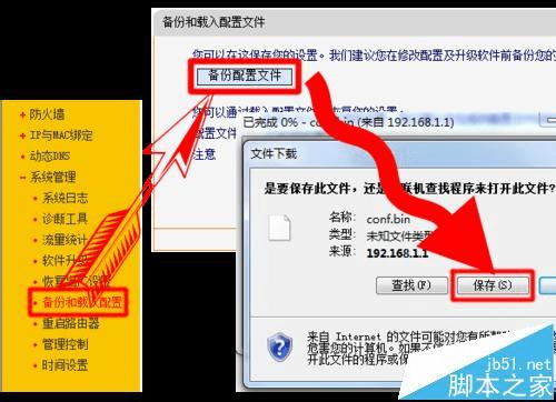 1、首先,登陆路由器,用路由器的“备份配置文件”功能把路由器的配置导出到电脑上,基本上所有的路由器都有这个功能的。配置里肯定包含pppoe拨号账号密码的啦,实际上wifi密码和路由器账号密码都有。