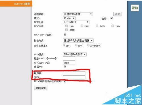 4、等待保存成功网页刷新后点新建,如图设置后,用户名填宽带名称,密码为宽带拨号密码,确认保存,成功后进入下一步