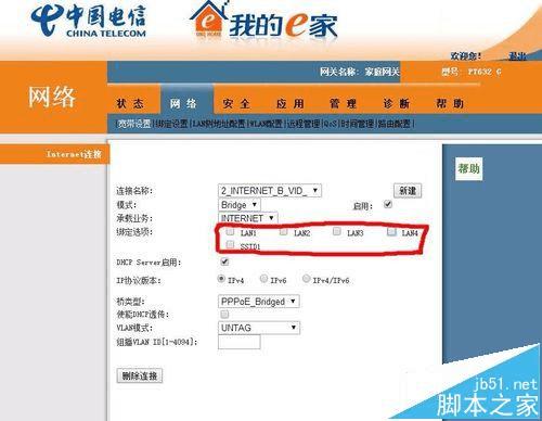 3、网络→宽带设置→下拉箭头→2_Internet_B_VID。去掉绑定选项中的全部对勾,然后拖到网页最下方点确定等待保存