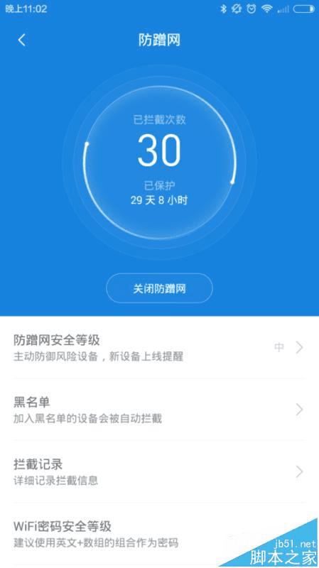 方法五、用小米路由APP关闭防蹭网功能,然后优化网络