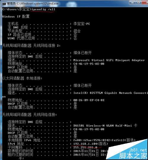 先获取第一台路由器的IP,方法:开始---运行,输入:cmd按回车键,然后输入ipconfig /all(ipconfig后面加一空格)然后查看即可(图1 )。 不习惯输入的可以查看”本地连接“的”详细信息“(图2).IP是192.168.1.1