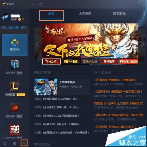 1、电脑连接到路由器的 Wi-Fi(或者电脑连接到路由器的 LAN 接口)。打开TGP游戏平台,点击左下角的设置图标。