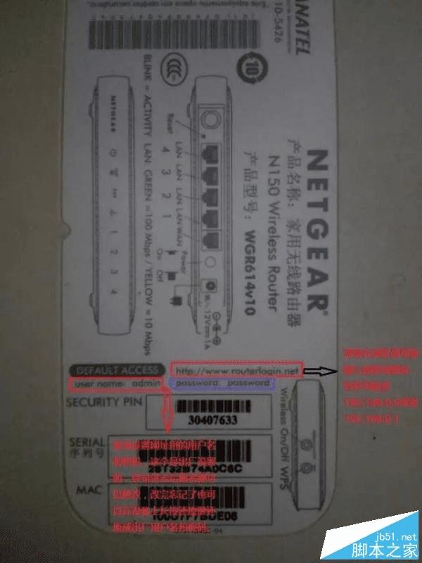 第一步:要找到自己路由器的位置,并查看路由器上面印的IP地址/域名,以及出厂设置的用户名和密码。笔者的路由器是NETGEAR的,他家路由器管理网址是:www.routerlogin.net,同时还要在路由器上面找到默认的用户名和密码,在这里用户名是:admin,密码是password。(注:每家路由器的登录网址、用户名和密码都不同,具体是什么要看路由器上面的贴纸)