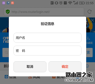 第三步:按了回车键后,浏览器弹出一个登陆框,在登陆框里面输入从路由器贴纸上找到的用户名和密码,输完后点击“确定”: