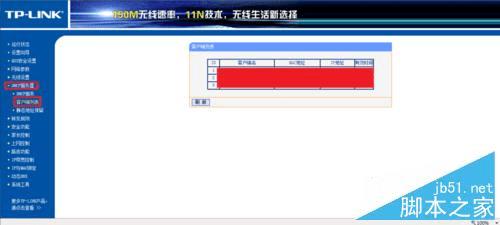 3、在左侧菜单栏中,点击”DHCP服务器“,再点击其子菜单栏下的”客户端列表“,查看当前连接到该路由器上的设备(该列表中显示的既包括有线设备,也包括无线设备),然后,记录下要限速的设备的”IP地址“。