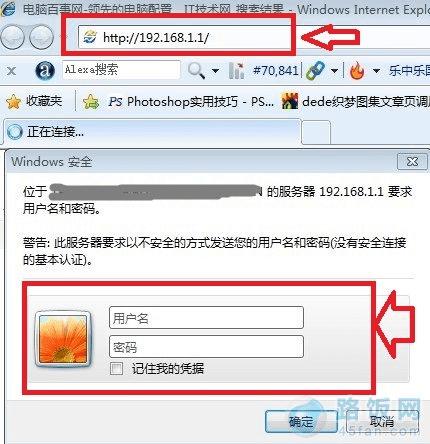 1、打开网页浏览器,然后在网址框中输入 192.168.1.1 完成后按 Enter回车键 确认打开,之后即可弹出路由器登录对话框,如下图所示: