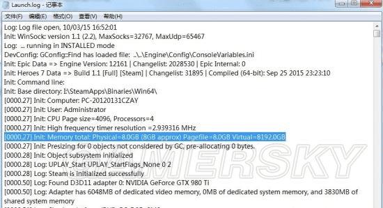 不知道是破解还是ubi的锅,我无论32、64都是第一次能进游戏,第二次必appcrash,需要删除Documents\My Games\Might & Magic Heroes VII\MMH7Game\Logs文件中的Launch.log文件才能进,今天研究了下发现竟然是[0000.27] Init: Memory total: Physical=8.0GB (8GB approx) Pagefile=8.0GB Virtual=8192.0GB这句出错,改成[0000.27] Init: Memory total: Physical=8.0GB (8GB approx) Pagefile=8.0GB Virtual=16.0GB就能进