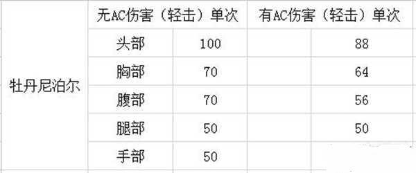 牡丹尼泊尔轻击有无AC情况下,最低伤害数据为50血,没有AC时,轻击头部一次爆头击杀,重击任何部位均可秒杀敌方,具体伤害数据和屠龙、龙鳞等尼泊尔类武器相同,下图为团队模式下的测试数据。