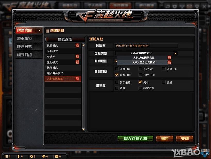 第一步 创建人机试练模式,选择:人机-混合团竞模式