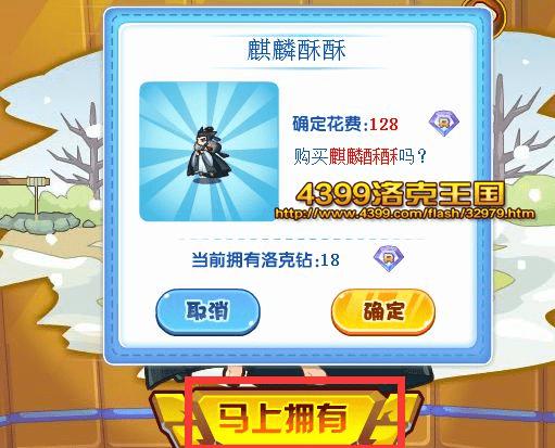 点击马上拥有按钮,就可以通过洛克钻购买麒麟酥酥。