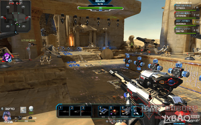 到15关,两边聚能炮全部安放到位,而减速辅助机械先锋也早已升级安放到位,本局游戏房间内有三名玩家有变身英雄技能的,但在12-15关是没有使用过的,测试的主要目的在于机关陷阱的配合,让通关更加容易化!