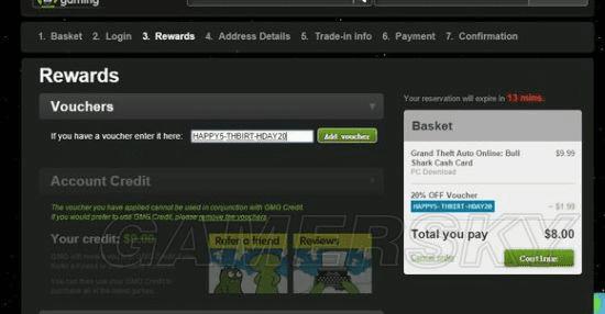 GMG主页上醒目位置会显示的(一般是20%off,即打8折),如果你注册一个账户,每隔一段时间GMG会向你注册时用的邮箱发促销邮件,里面有时提供折扣更大的你独享的优惠码(25%off左右,即打7.5折)。