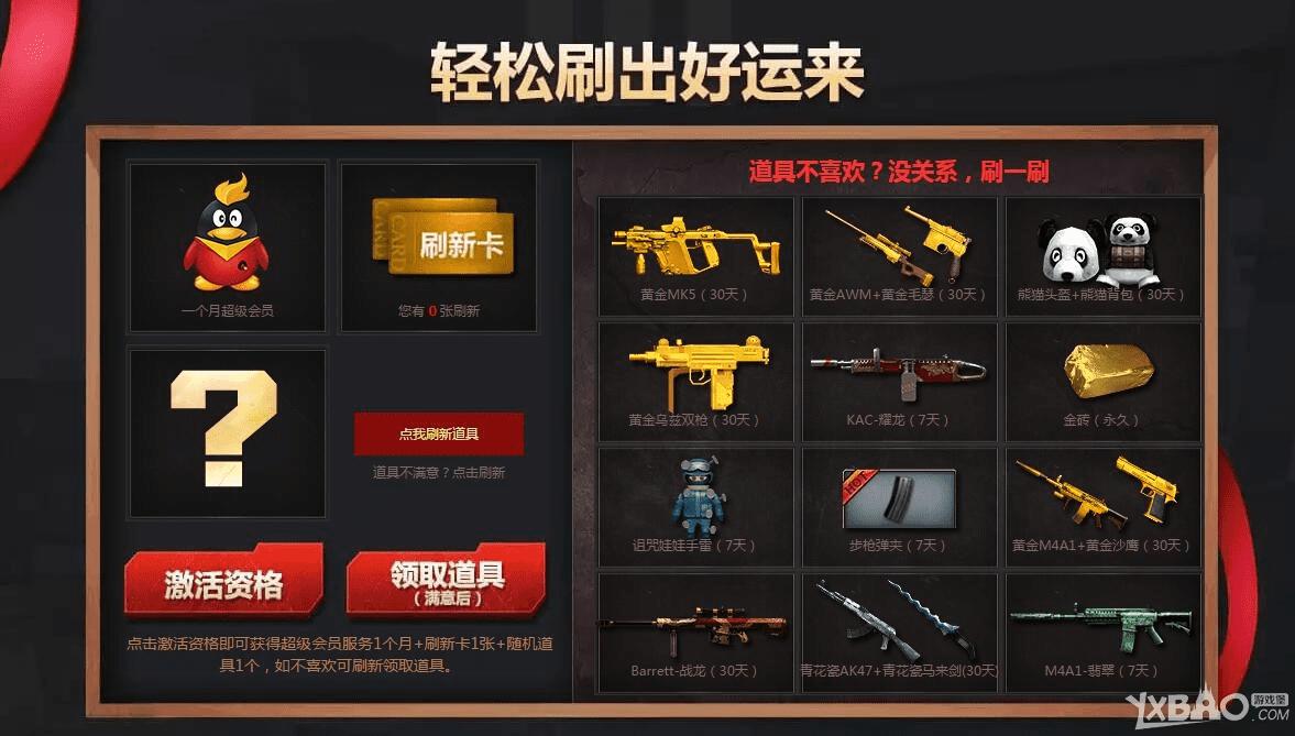 1.点击激活资格即可获得超级会员服务1个月+刷新卡1张+随机道具1个,如不喜欢可刷新领取道具。