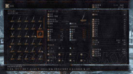二代出了名的短,而且双手重击十分蠢,三代咸鱼翻身【没反击翻的更咸了】,双手轻招加强了很多,这点我们放到后面和游魂大剑一起讲,面板虽然是混伤但也很惊人,可以变质和附魔,有个单手戳稍微能弥补一下长度问题,pve有横向范围大的双手轻,很好用,pvp推荐压个30级左右,粗制,配合福林戒指使用,由于这作松脂是加固定伤害,压级入侵准备多点黄金松脂,对方拼刀基本就是个死。