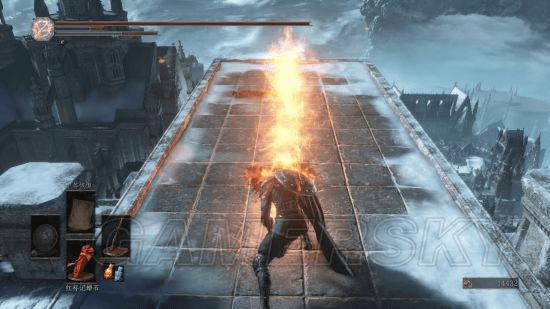 动作还是标准无突刺动作,长度中等略短,但是面板很高,战技把剑举到头顶时为强制霸体,只有本来能击飞你的招数才能打断你,而巨剑龙斧什么的冲刺攻击通通打断不了。范围为三格地砖,长度到桥的尽头,火会持续一秒,只要踩上了就会被击飞,迎着滚不可能躲得掉。近身有额外伤害,而且少数情况有些人会站起来又被火烧到。释放完以后加80火属性伤害,应该是第二面板的大剑。【那些普通武器+附魔的不算】