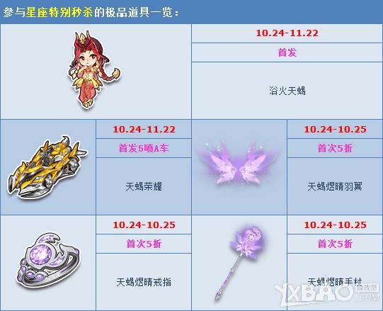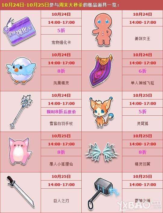 10月23日-10月26日期间,万圣节超值回馈开启,周末大秒杀酷炫来袭,一系列极品低至5折出售,酷炫赛车、神级萌宠、精美饰品、人气套装,满足你的一切幻想,千万不要错过哦!
