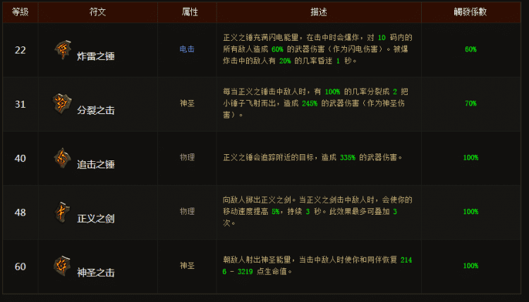 可以看出,正义每个符文的触发系数都很高,但是hit数依赖敌人的线密度,攻速上没优势,每个符文都挺鸡肋的。