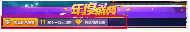 打开入口,印入眼帘的就是一个璀璨的大面板,根据页签分为了三个内容:极品秒杀盛典、双十一万人团购、感恩节选五折。