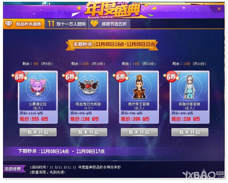 为了庆贺年度盛典,11月特意开放了四场极品秒杀,秒杀时间如下:
