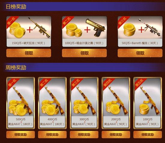 2.每周一的1:00将公布前一周的小游戏积分周榜,周榜上前五名的玩家,可以在榜单公布的当日领取对应奖励。