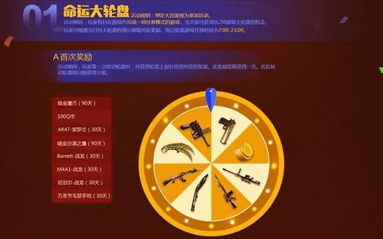 活动规则:绑定大区即视为参加活动。活动期间,玩家每日在游戏内完成一局任意模式的游戏,当天即可获得玩2局超级大轮盘的机会。玩家可根据当日玩大轮盘的得分领取对应奖励。每日轮盘游戏开放时间为7:00-23:00。