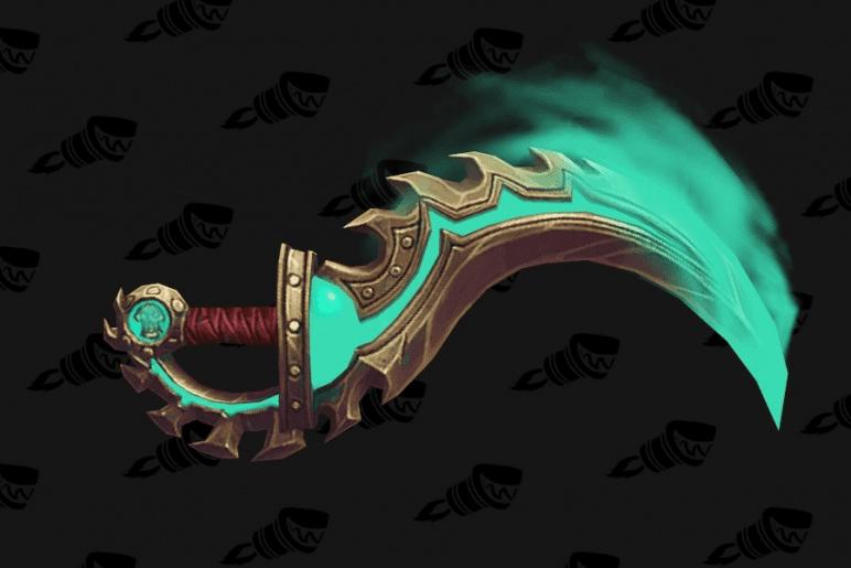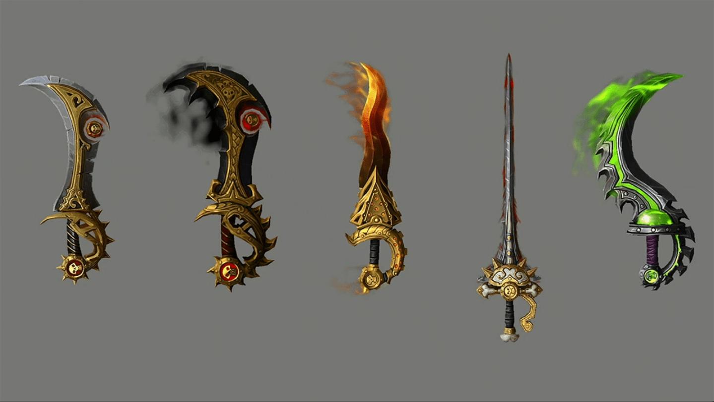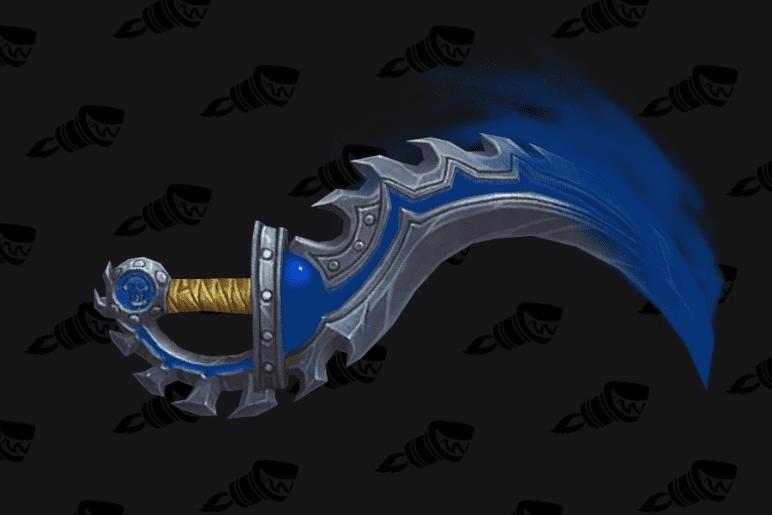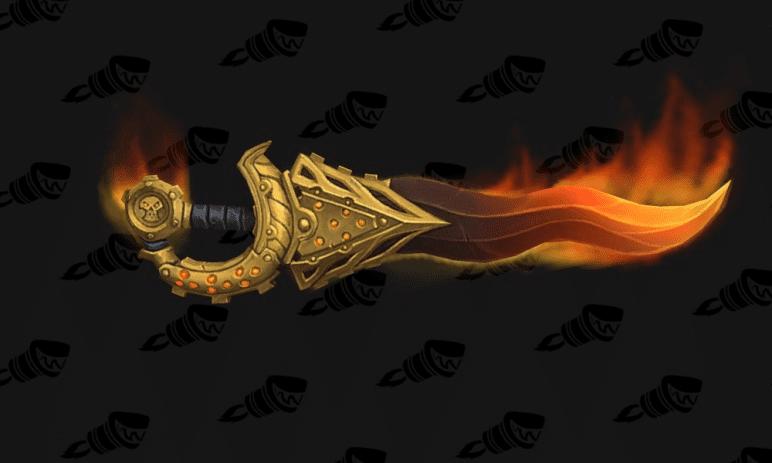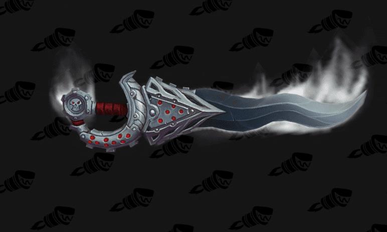 7.0新专精狂徒贼的神器恐惧之刃(命与运)一副精工铸造的弯刀,其中包括西洋剑和海盗弯刀两个可选造型,海盗弯刀今天更新了两个新的模型,加上固定可选的四种配色一共有8个新造型。
