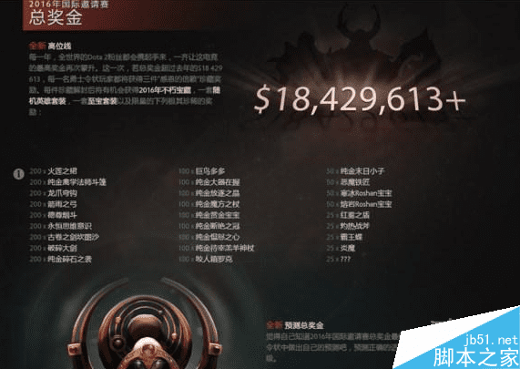 这项活动简直就是明目张胆的圈钱,奖金池只要超过TI5,前五届TI的稀有道具都有机会再获得,甚至还有四大纯正(红雾之盾、霸王蝶、恶魔刀锋、灼热战斧)!而且预测总奖金是闹哪样!好吧,2500W起~